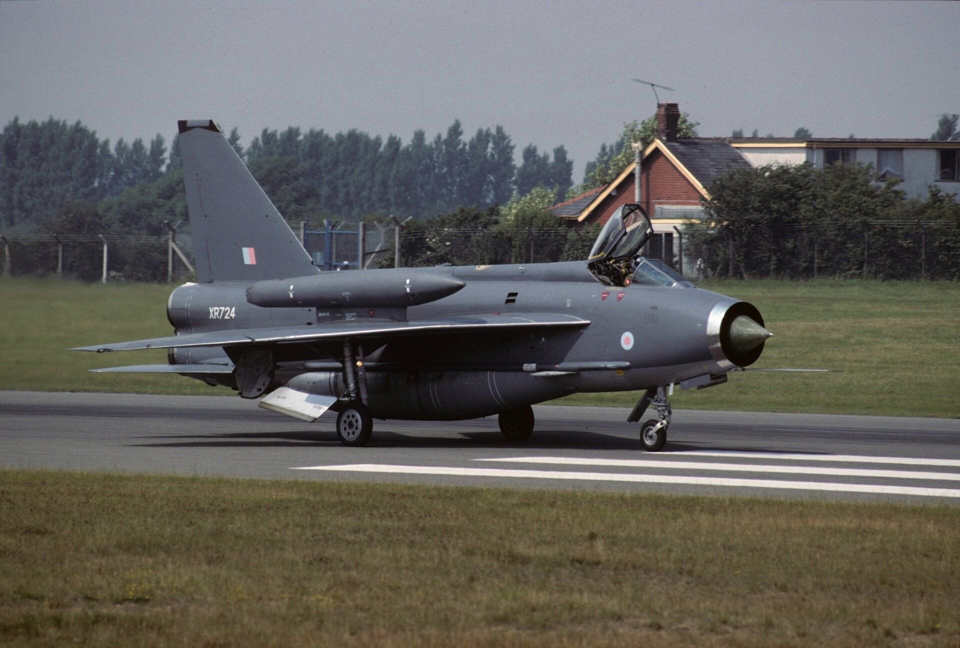English Electric Lightning F.6 XR724 was the first to be retired of the five Lightnings allocated by the MoD to British Aerospace at Warton as chase aircraft in the Tornado Foxhunter radar development trials. Her Fatigue Index (FI) was coming perilously close to zero, and so she was flown to RAF Shawbury for storage while she still had some FI left on the airframe. Once below zero she would not have been able to fly again under any circumstances.