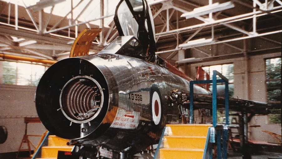 XG329; C/N 95018 ff R.P. Beamont 30-4-59 Samlesbury. Mainly used on gun-firing programme. Fitted with F3 fin approx 8-64. Seen in overall red paint scheme, Warton before delivery to A&AEE where it was used as a chase plane for the TSR 2. used by de Havilland from 6-4-66 to 21-12-66. Then returned to Boscombe Down. Cranwell Engineering School 1970 as 8050M. Now owned by Ian Hancock. Norfolk and Suffolk Aircraft Museum, Suffolk