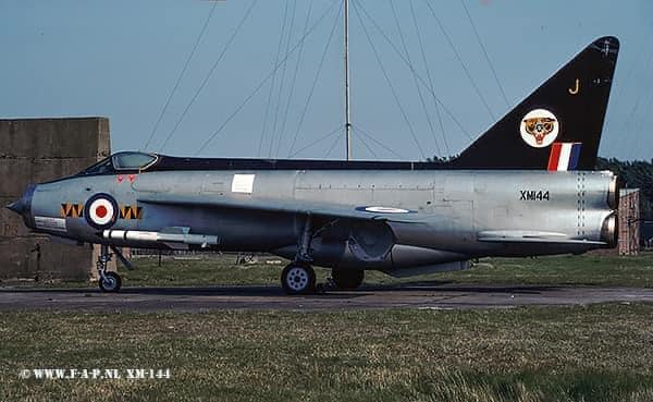 XM164; C/N 95045 ff D. de Villiers 13-6-60 Samlesbury. To Boscombe Down, then to 74 Squadron, ‘K’, 8-60; to 226 OCU, 9-64; then to 33 MU and to Fighter Command Trials unit (later renamed Binbrook TFF), 22-2-64; to 60 MU, 3-69, and to Leuchars, 9-71; to 60 MU for storage, 4-72.