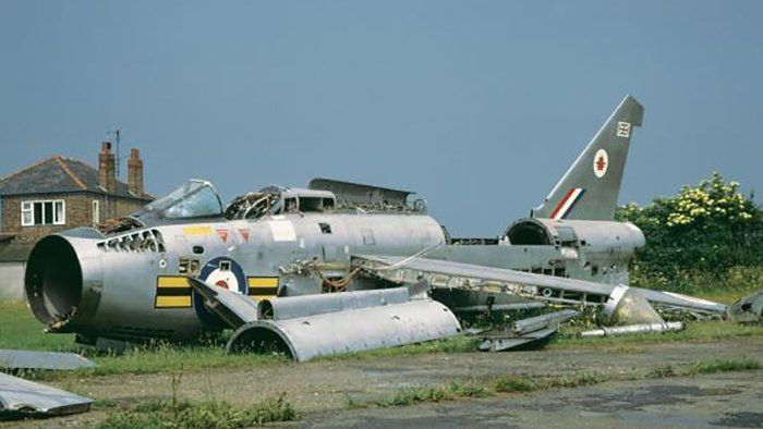 XM184; c/n 95082. Built 27/2/61. 111 Sqn, crashed on landing Coltishall 1967, written off and stripped for spares, then to fire dump.