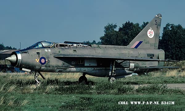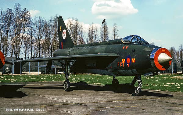 XN771; C/N 95124 ff R.P. Beamont 29-8-62 Samlesbury. To the AFDS, Binbrook as ‘M’, 14-11-62; to 33 MU; to the CFE; to Warton, 21-9-66, for F 2A conversion; first flight 1-2-68; to 19 Squadron as ‘P’, 21-3-68. Scrapped DTEO Shoeburyness, late 1995.