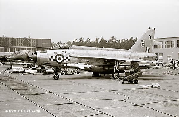 XN781; C/N 95134 ff T.M.S. Ferguson 12-12-62 Samlesbury. To 19 Squadron, Leconfield, as ‘J’, 15-3-63, to 33 MU, then to Warton, 13-9-66, for F 2A conversion. First flight, 29-12-67; to 19 Squadron as ‘B’, 26-2-68. Became 8538M.