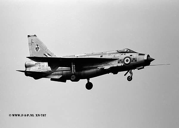 XN786; C/N 95139 ff T.M.S. Ferguson 12-2-63 Samlesbury. To 92 Squadron as ‘D’, 9-4-63. Cat 3 damage, 3-8-65. To Warton , 29-10-68, for F 2A conversion, returned to 19 Squadron as ‘M’. First Lightning to carry definitive camouflage scheme in 5-72. Became 8500M.