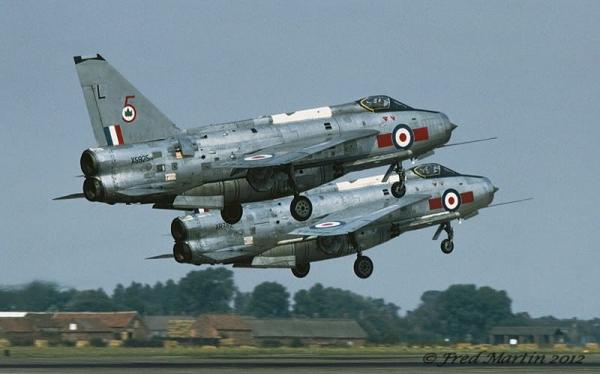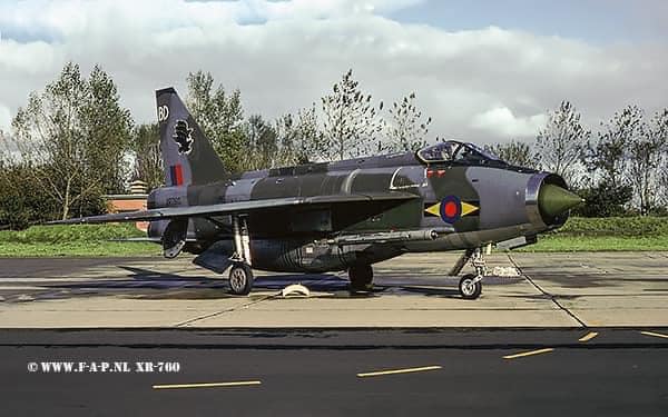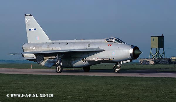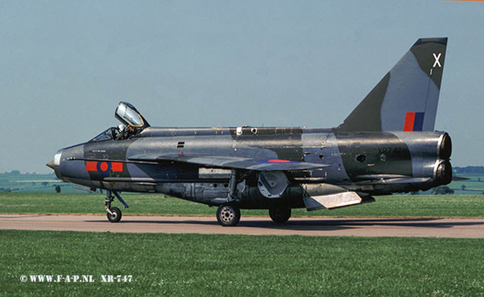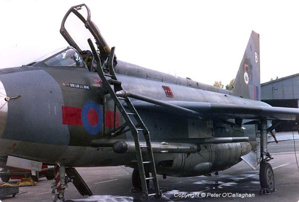 XS897; C/N 95243 ff R.P. Beamont 10-5-66 Samlesbury. To 74 Squadron, 21-12-66; to 56 Squadron (S), Cyprus. 16/7/1993 to South Yorkshire Aircraft Museum, Firbeck. 6/2009 Lakes Lightnings' - on loan to 29 Sqn, RAF Coningsby, Lincolnshire