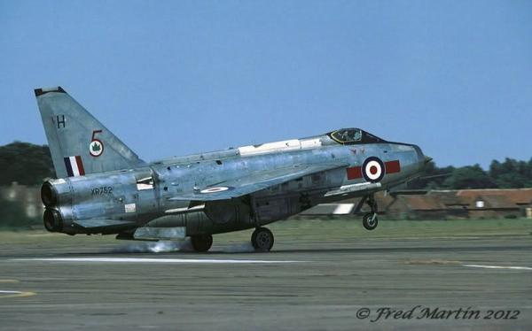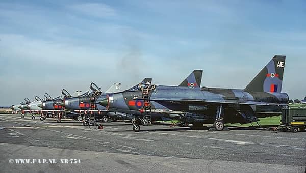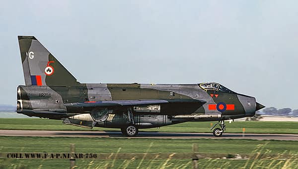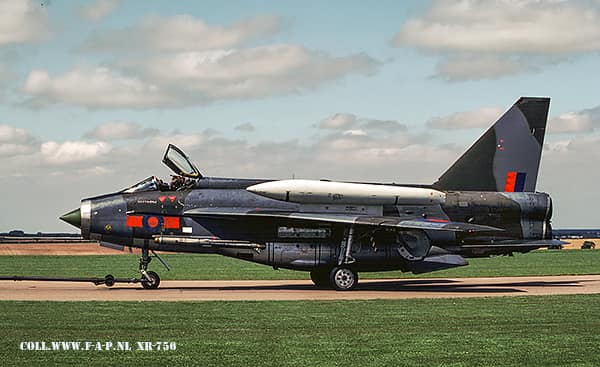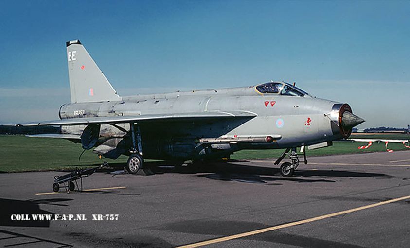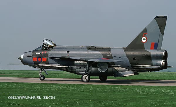 XR753; C/N 95218 ff R.P. Beamont 23-6-65 Samlesbury. To the CFE, 16-11-65; to 5 and 23 Squadrons; to Warton for full F 6 modification, 21-3-68; to 60 MU, 18-7-69. With 5 Squadron, Binbrook, 1983. XI (F) Squadron, RAF Leeming, N. Yorkshire. Then to Coningsby 17/11/2005 for display again with 11 Squadron.