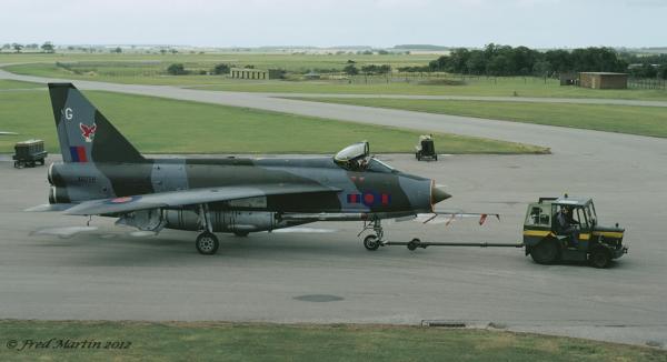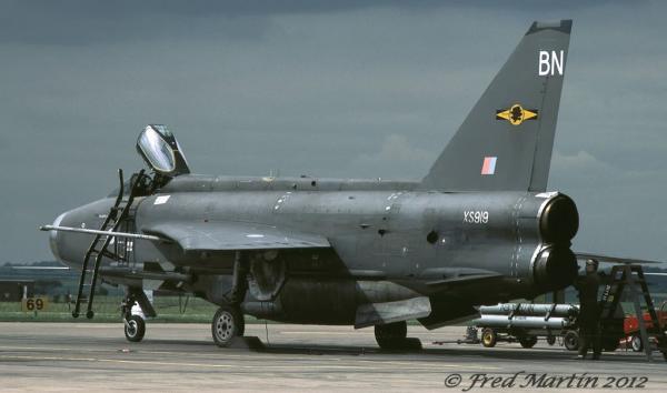 XS919; C/N 95252 ff J.K. Isherwood 28-9-66 Samlesbury. To 11 Squadron, 14-4-67; to 56 Squadron (R), Cyprus; with 5 Squadron (AD), Binbrook, 1983. owned by Ray Heming, Torpoint Shipping Co., Torpoint, Plymouth. 27/4/1988 sold to Lower Tremor, Cornwall, 24/6/1988 to Victoria Dock, Devonport during 1994 sold 2/1999 to Wonderland Amusement Park, Farnsfield, Notts for display. Transported to Westfields Industrial Park, Dinton, Wiltshire in 3/2/2011 for storage. Current location unknown