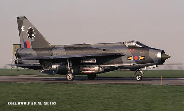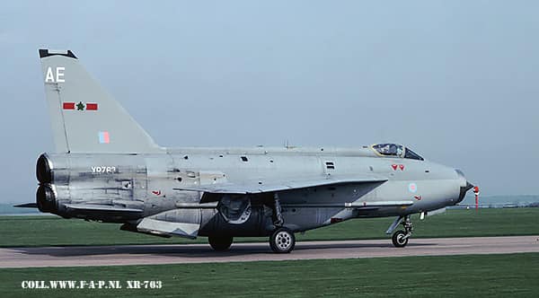 XR763; C/N 95228 ff T.M.S. Ferguson 15-10-65 Samlesbury. To 5 Squadron, 11-2-66. Full F 6 modification, 3-1-67. To 23 Squadron, 1-11-67; to 11 Squadron, 12-73; with 5 Squadron (AE) at Binbrook, 1983. The fin extant from this aircraft is located at the Air Movements Centre, RAF Akrotiri