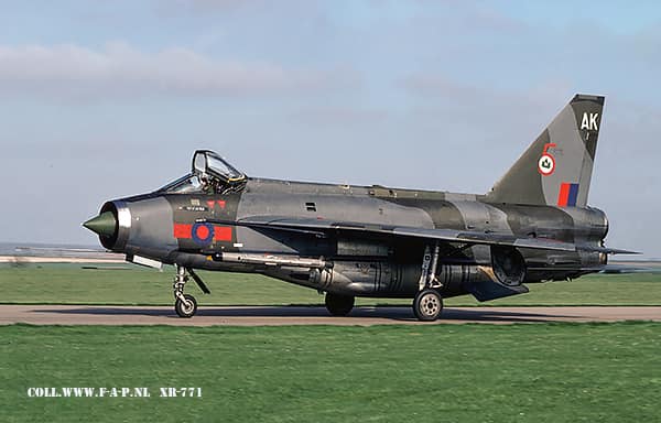 XR771; C/N 95236 ff T.M.S. Ferguson 20-1-66 Samlesbury. To 74 Squadron, 24-10-66. At Binbrook, 1981. Midland Aviation Museum, Coventry Airport. On Loan from Magnetec Ltd.