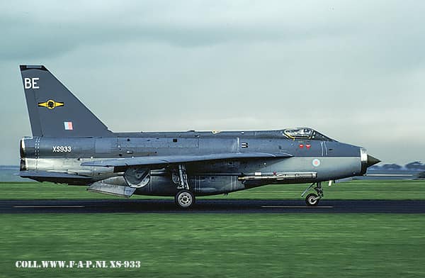 XS933; C/N 95266 ff J. Cockburn 27-4-67 Samlesbury. To 11 Squadron, 23-6-67; to 56 Squadron (K), Cyprus; at Binbrook, 1983. Cockpit Section owned by Steve Jones, Farnham, Surrey